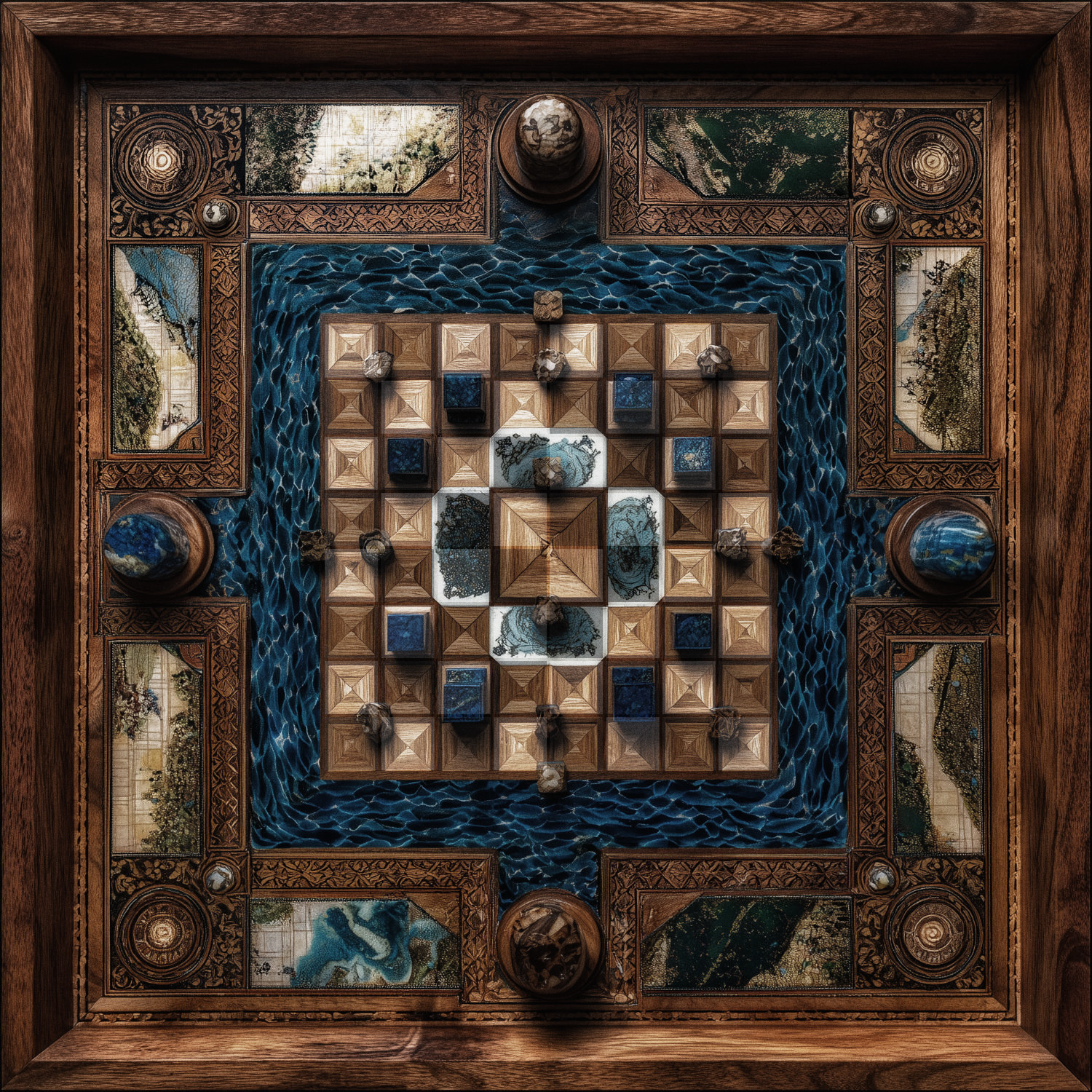 Natura has been designed so that it can be played on the earth or sand with carefully chosen stones or natural found objects. The board and pieces can be drawn with paper and a pencil, using printable files, or designed with more complex materials like wood, ceramic, glass, or stone.